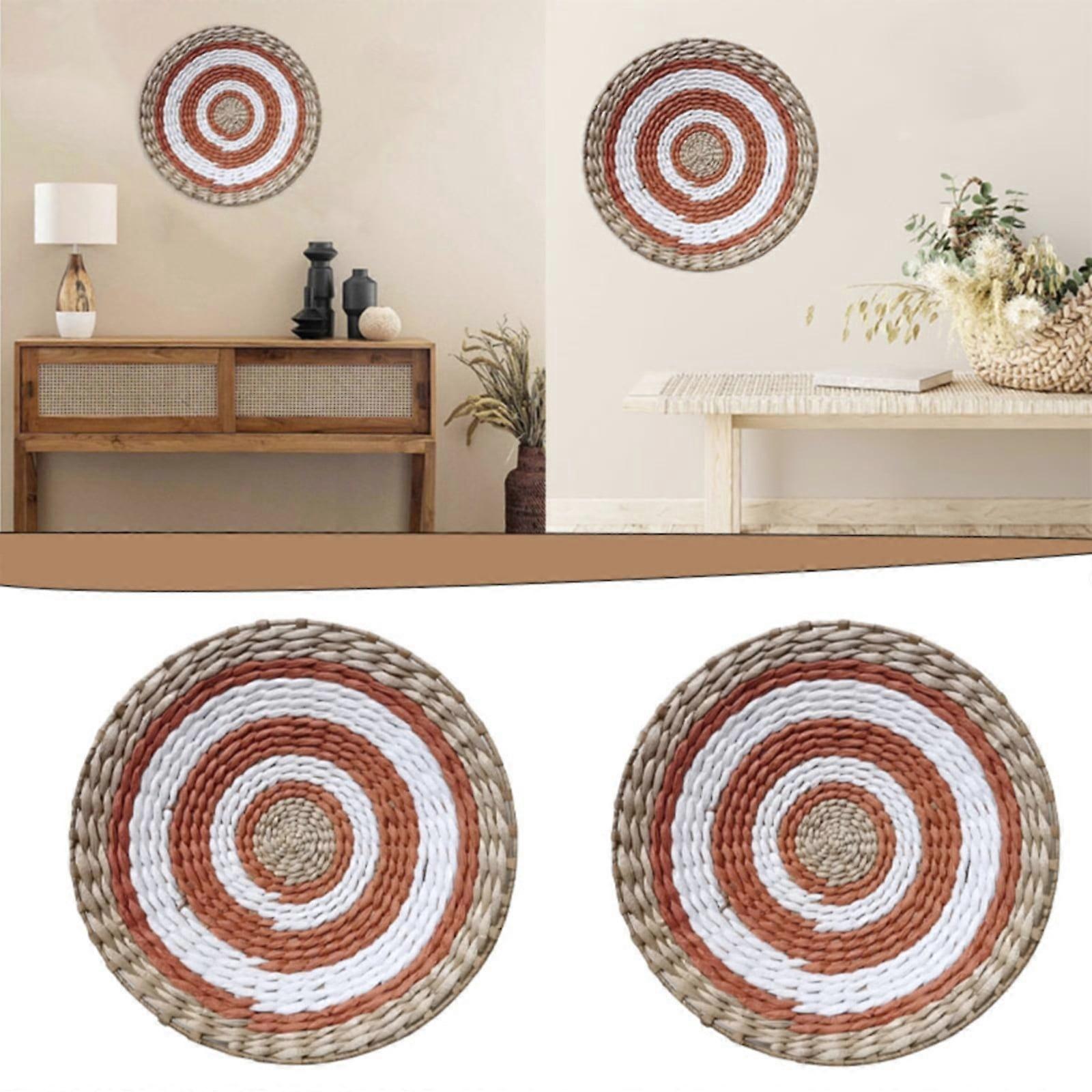 Boho Wall Basket Decor, Rattan Woven Macrame Tapestry, Compatible with Bedroom & Living Room, Handmade Round Wicker Hanging Art Set