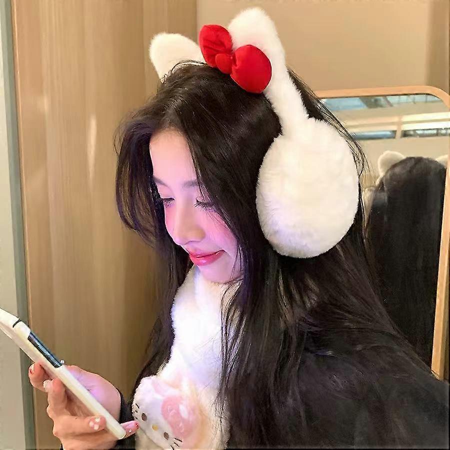 Red Bow-knot Cat Ear Earmuffs Popular Trendy Winter Warm Soft Plcomh Woman EarMuffs Fahsion Outdoor Clothing Accessories