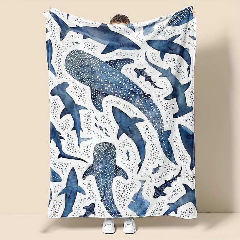 Romantic ocean style whale shark pattern warm blanket children adult nap blanket soft and comfortable suitable for all seasons