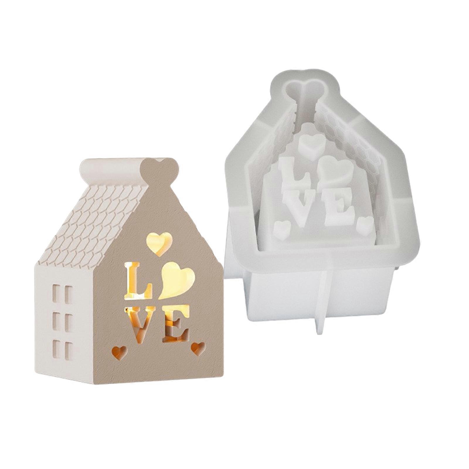 Flexible Silicone Mold for Making Decorative Candle Stand Hollow Out House Night Light Mould Holiday Decoration Mold Multicolor