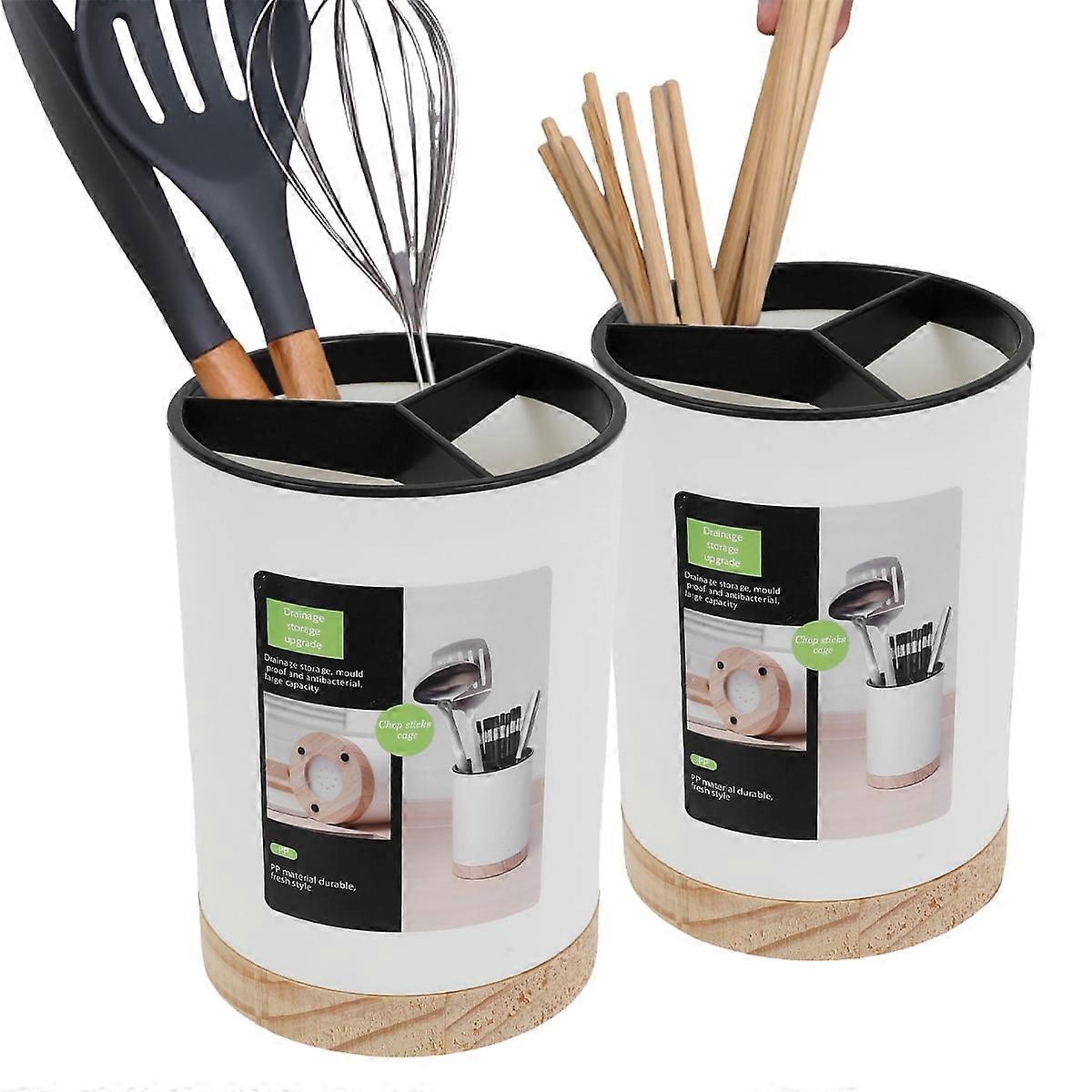 Jetcloudlive 2Pcs Kitchen Utensil Holder, Draining Chopstick Cage, Wall Mounted or Standing Cutlery Storage Organizer Caddy
