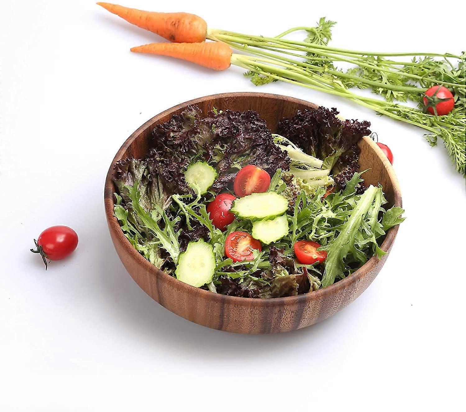 Manunclaims 1Pc Large Wooden Salad Bowl, Solid Acacia Wood, Round Household Bowl for Fruits, Vegetables, Salad - Kitchen Tool