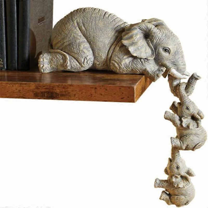 Set of 3 Elephant Shelf Seaters, Mother Elephant Hanging Baby Elephants, Mantle Decoration, Elephant Statue, Sculpture, Resin Fi