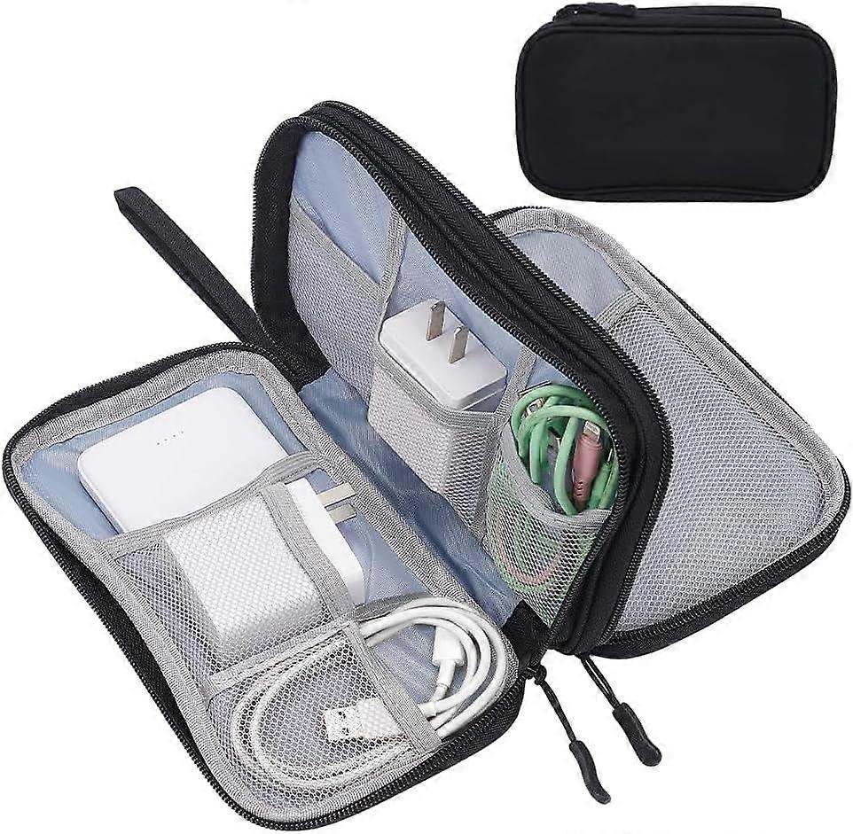 Polyester Double-Layer Waterproof Travel Organizer Bag, Compatible with Cable, Charger, Phone, Earphone, Cosmetics, 32cm Black