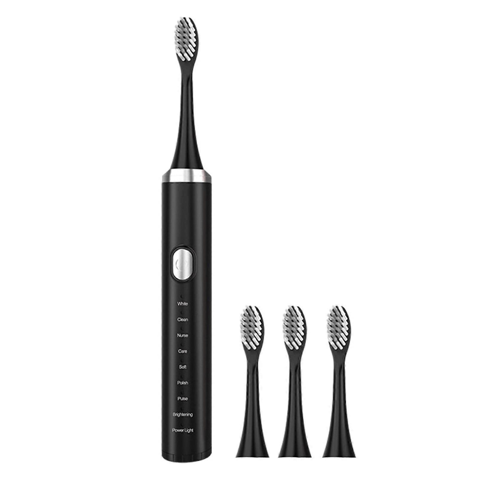 Electric Toothbrush,Low Noise, Portable, Smart Timer Electric Toothbrush IPX7 Water Electric Toothbrush Vibration,8 cleaning modes, 4 brush head electric toothbrush Feature: Quantity: 1Pc Material: Flame retardant plastic Color: Black Product size: 21x2.5x2.5cm/8.26x0.98x0.98in Packing size: 19x12x3cm/7.48x4.72x1.18in Net weight: 90g/0.19lb Gross weight: 115g/0.25lb Level: IPX7 Power supply: USB charging Number of brush heads: 4 pack Descrition: Deeply Clean Teeth Electric toothbrush delivers 19000 strokes per minute, removing up to 5X more stains vs. a manual toothbrush. gently pulses fluid between the teeth and along the line for a gentle and effective clean every time. Free switching of 8 modes,the electric toothbrush for Different Teeth and Conditions , suitable for adults. White-brightening mode, care, relieve tooth bleeding. Replaccement Heads The soft, bristles are designed to suit teeth topography and up to more stains . Interdental brush can go deep into the teeth, and ideal for cleaning between braces, crowns, and implants. Low noise operation, gentle press: Quiet and comfortable cleaning of teeth, making it your better choice for home and travel IPX7 Level Rechargeable toothbrush with IPX7 rated Level design, so the entire toothbrush can be safely rinsed with water and user can safely use toothbrush in the bath or shower. Package Content: 1x Electric toothbrush 4x Toothbrush head Conjunctive word:kids toothbrush;toothbrush soft;electric toothbrush;electric toothbrush for kids;toothbrush;toothbrush holders;electric toothbrush for adults;kids toothbrush;travel toothbrush;kids electric toothbrush;toothbrush heads;electric toothbrush kids;toothbrush electric; Electric Toothbrush,Low Noise, Portable, Smart Timer Electric Toothbrush IPX7 Water Electric Toothbrush Vibration,8 Cleaning Modes, 4 Brush Head Electric Toothb Sparkle with our high-tech electric toothbrush for a brighter smile and effortless oral care Revolutionize your routine with precision and comfort – our advanced electric toothbrush delivers superior results Embrace cleanliness and convenience with our innovative electric toothbrush, ensuring a fresh and dazzling dental experience Electric toothbrush