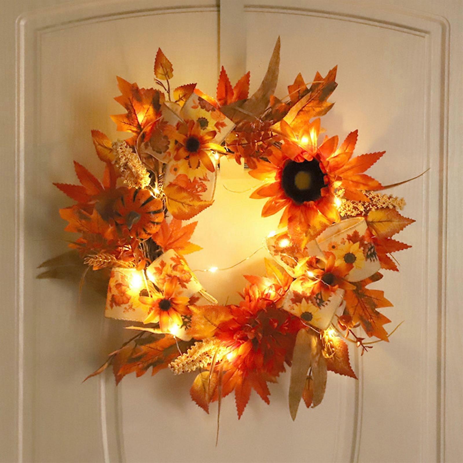 Cailmei Festival Sunflower Wreath Simulation Maple Leaf Thanksgiving Wreath Door Hanging B Free Size