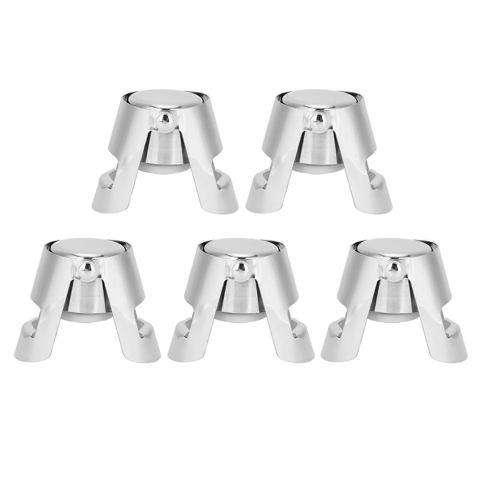 Wine Stopper-5Pcs Push Type Stainless Steel Wine Champagne Sealed Stopper Kitchen Bar Accessory
