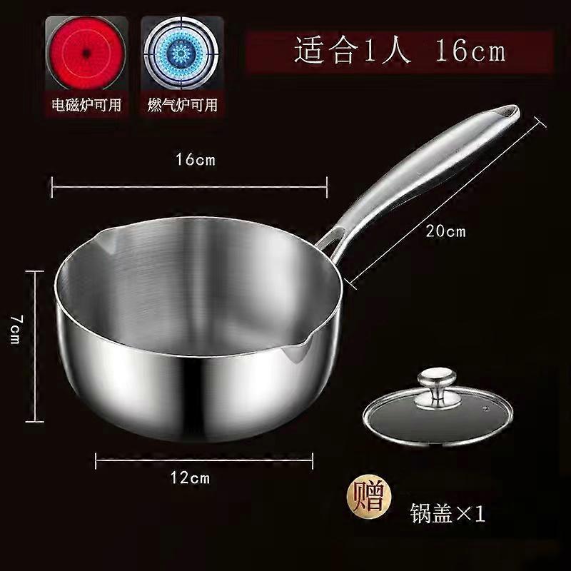316 stainless steel flat-bottomed pan for household use, with thickened non-stick coating. Suitable for heating milk and cooking
