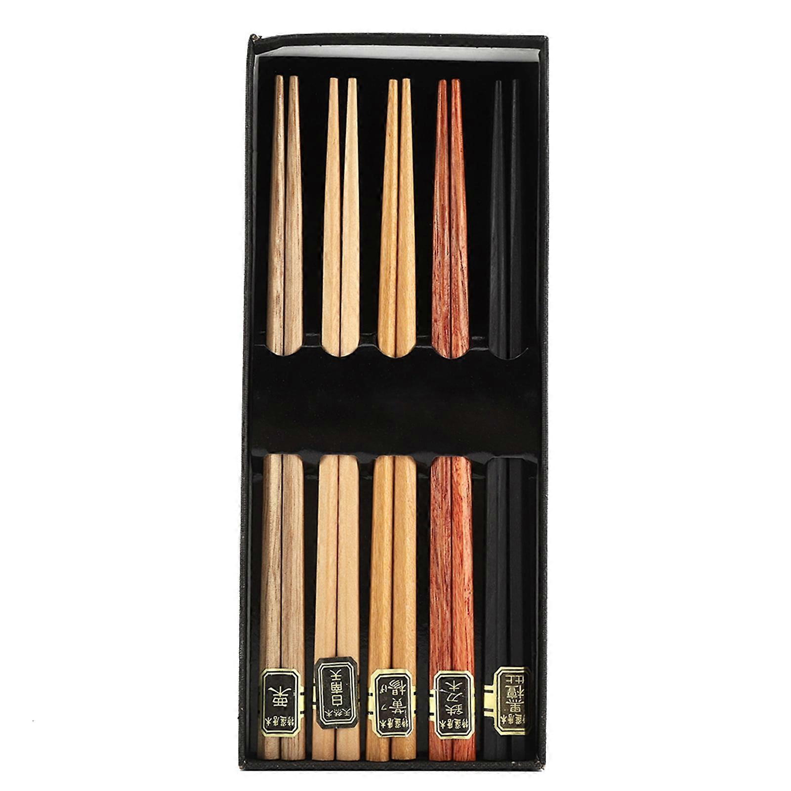 Heaveant Wooden Chopstick, 5Pcs Multicolored Natural Logs Wooden Paint Handmade Reusable Chopsticks with Gift Box