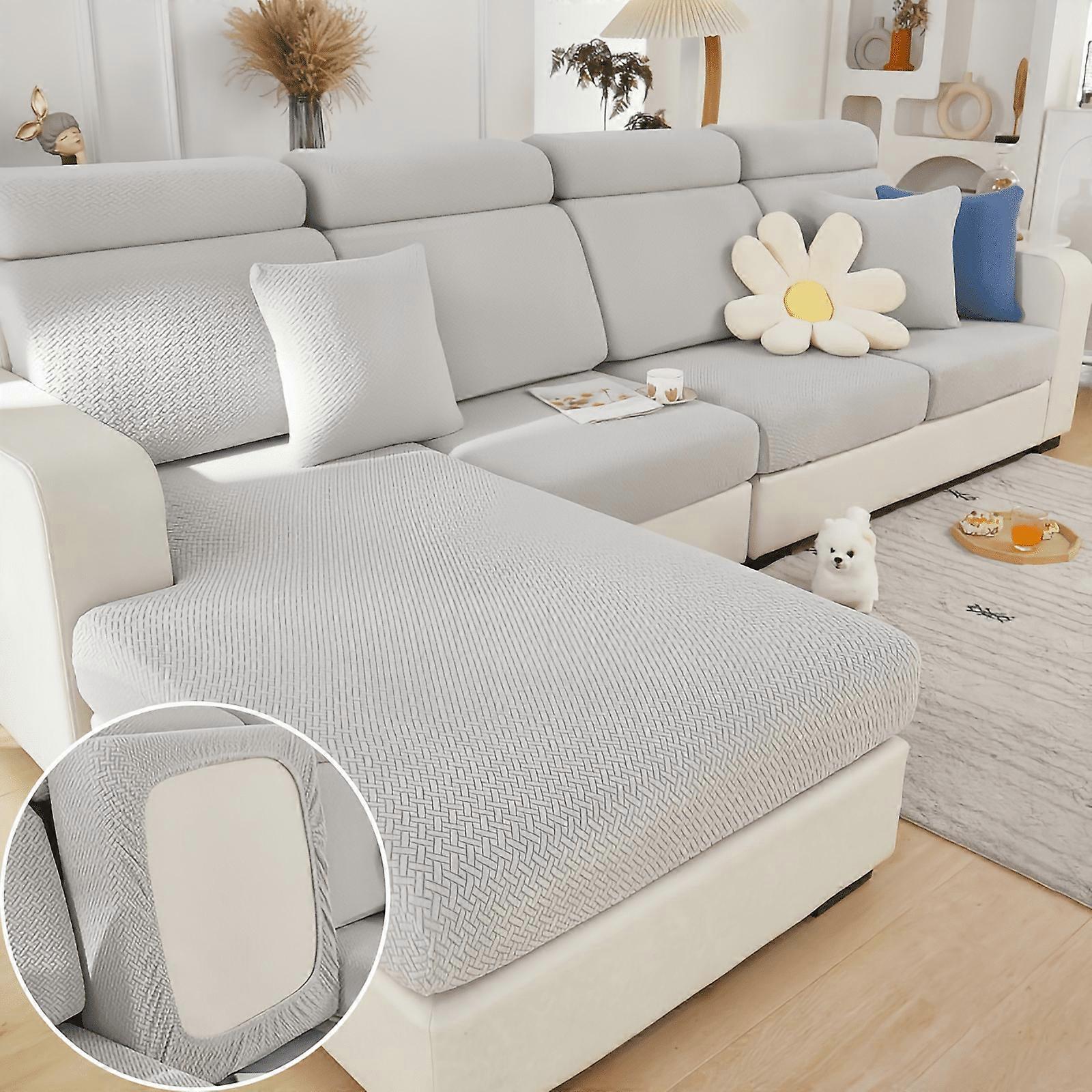 Universal Wear-Resistant L-Shaped Sofa Cover, Anti-Slip Furniture Protector, Chaise Lounge Slipcover Compatible with Magic Sofa (Light Gray)