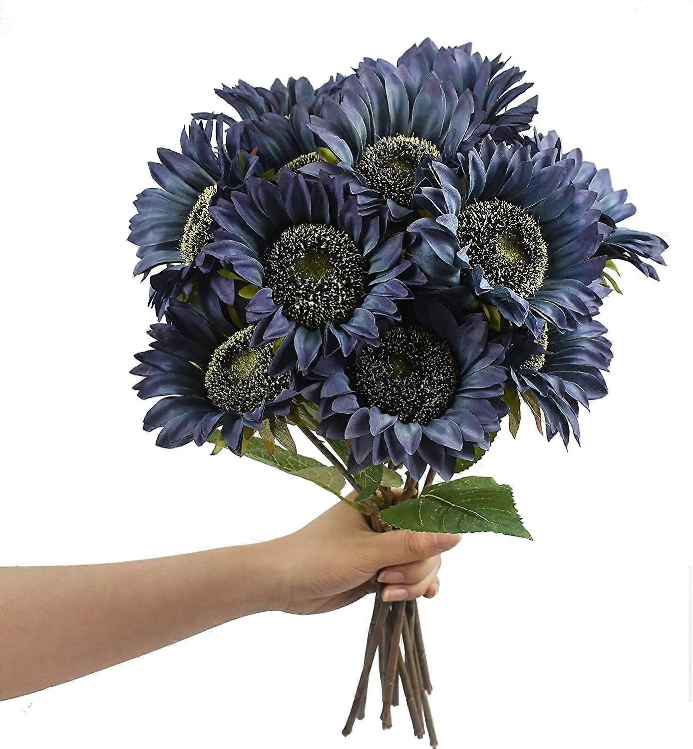 Zukuco 6 Pcs Artificial Sunflower Bouquet with Stems, Blue Fake Sunflowers for Wedding, Home, Hotel, Office, Party Decor
