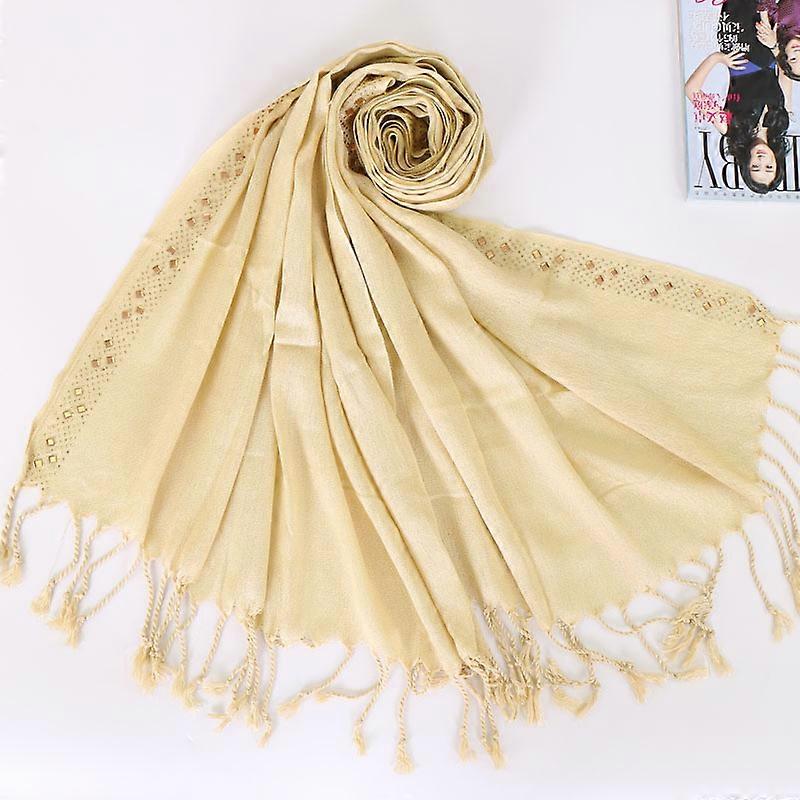 Women Muslim Islamic Tassel Glitter Hijab Scarf Rhinestone Shawl Head Wrap Stole