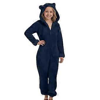 Autumn Winter Children's Boys Girls Thickened Hooded Jumpsuit Pajamas Cute Hooded Long Sleeved Zipper Plush Warm Home Clothes
