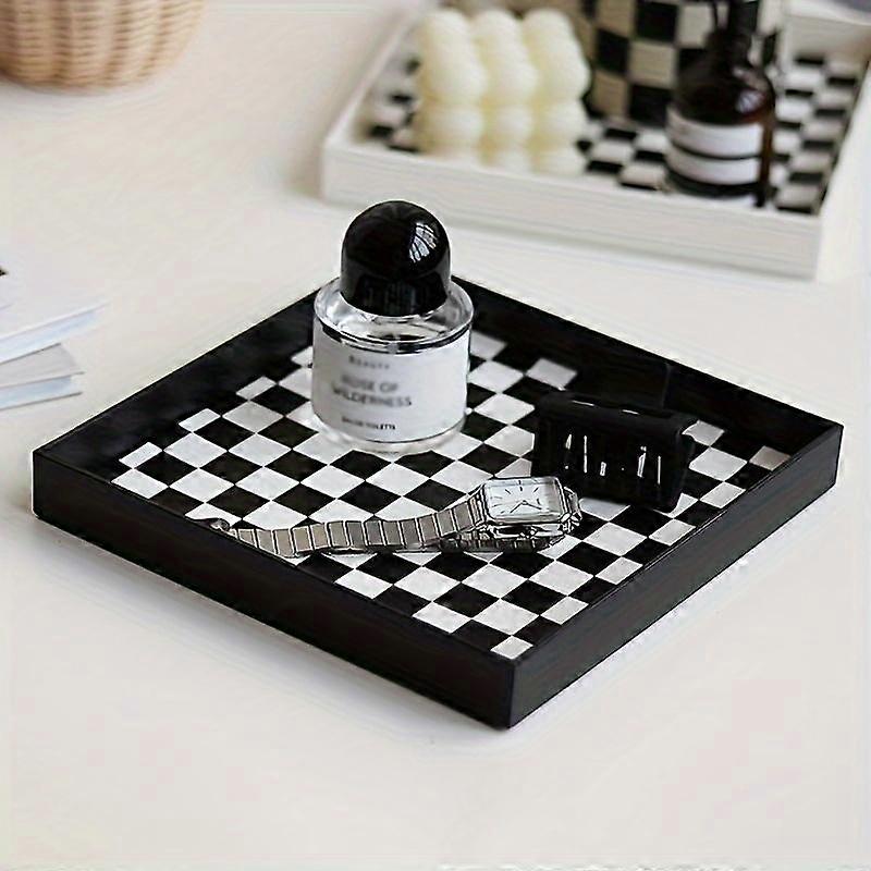 Fashion Plaid Desktop Storage Tray, Organizer for Lipstick Skincare Cosmetics Perfume, 1/2 Piece Set, Stylish Desk Accessory