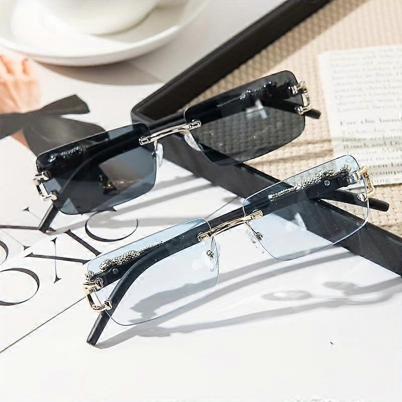 Vintage Elegant Sunglasses with Cheetah Decoration, Frameless Gradient Cut Lenses, Unisex Beach Eyewear, Stylish Sun Glasses
