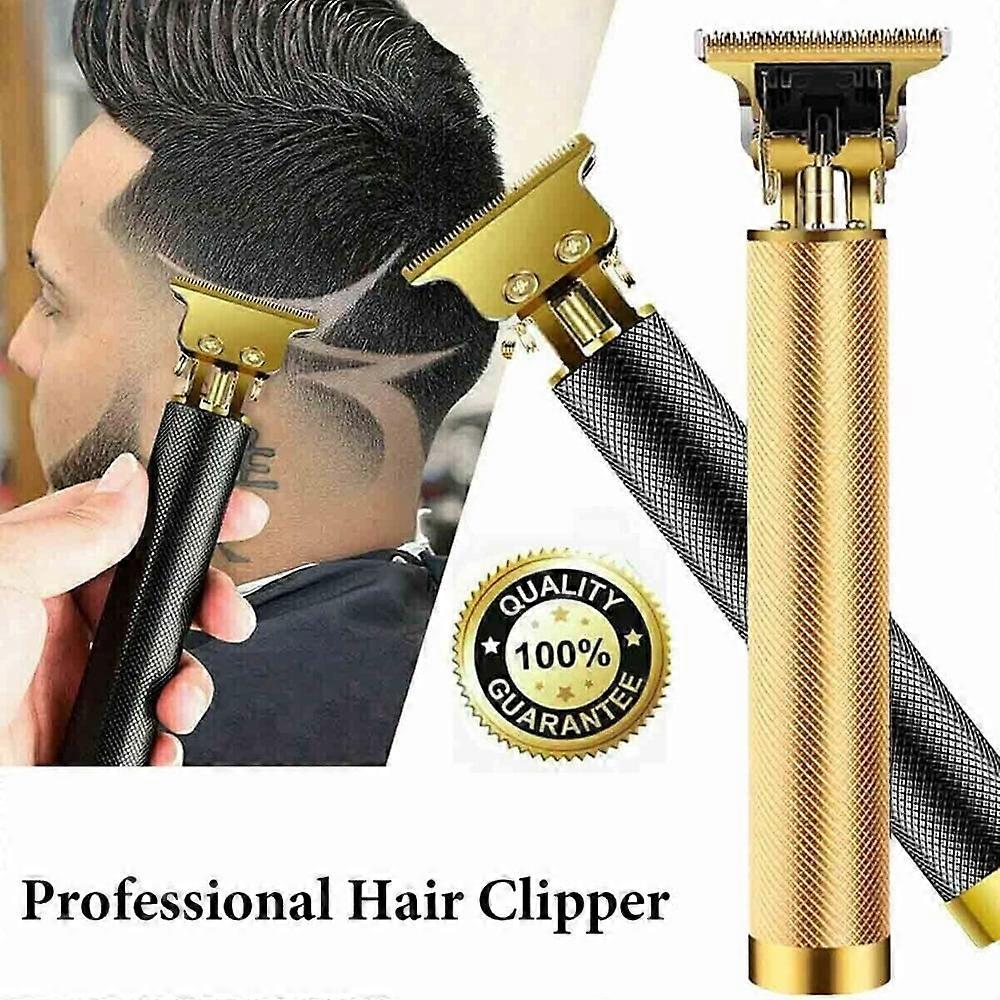 Men's Hair Clippers, Electric T-Blade Trimmer, 0mm Bald Head, Cordless USB Rechargeable, Beard Trimmer, Gold, Compatible with All