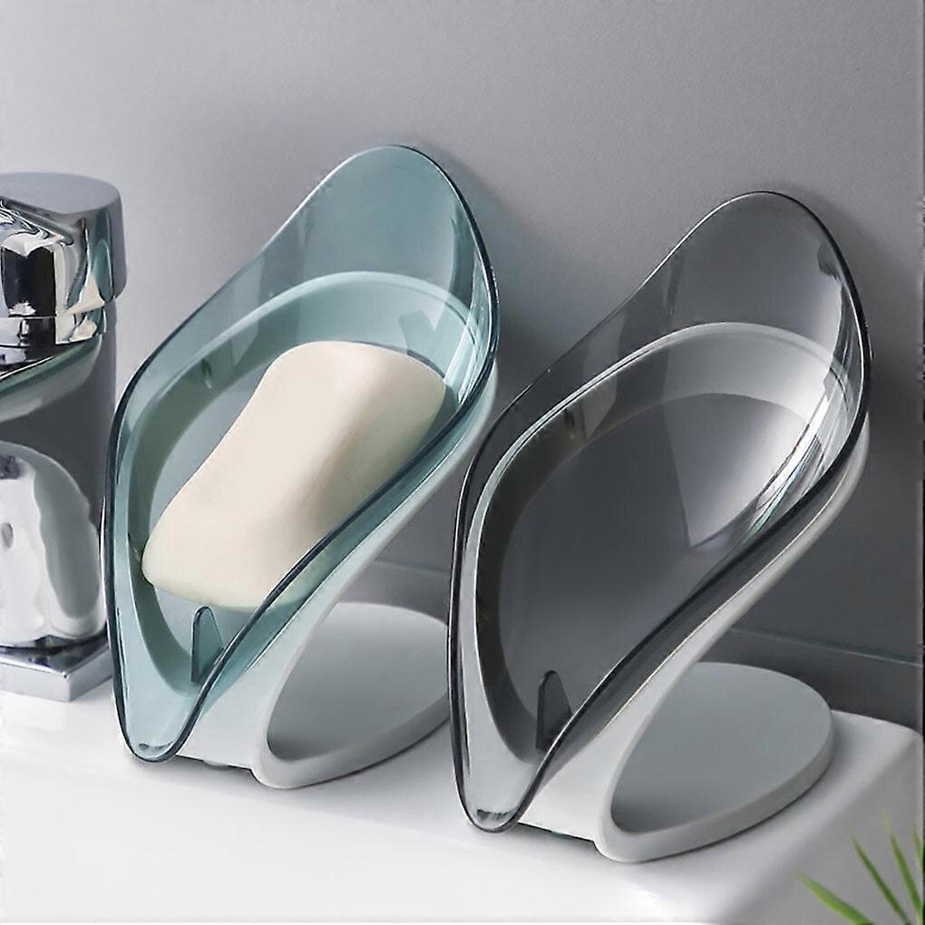 KAGAYD Self Draining Soap Box No Punching Leaf Shape Dish Tray Decorative Soap Holder for Bathroom Kitchen, Grey"