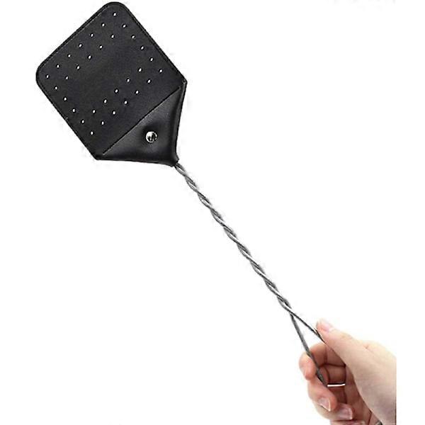2-Pack Rugged Leather Fly Swatter - 17.5" Heavy Duty with Metal Handle, Rustic Design for Flies, Bees (Chocolate)