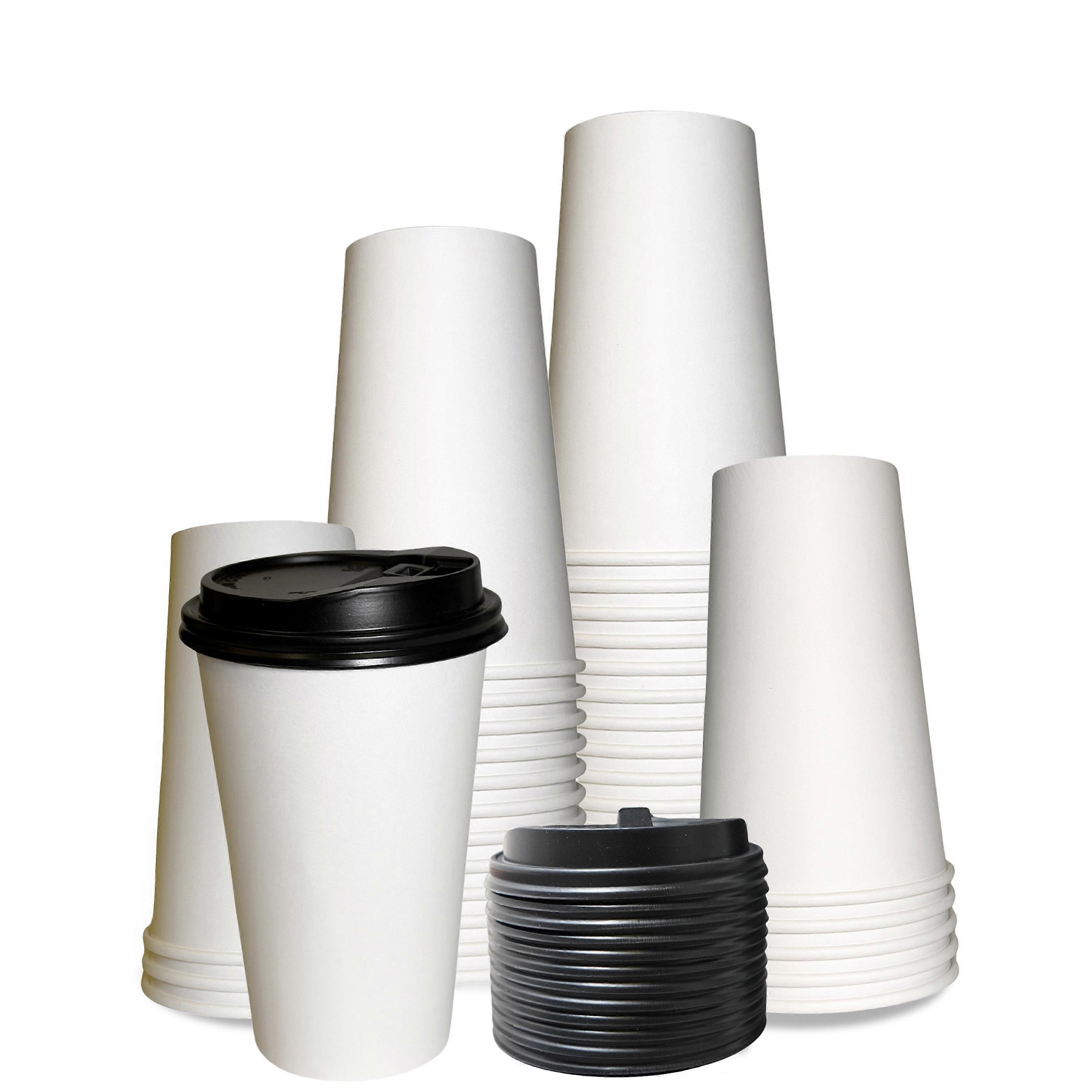 50 Pack 20oz White Paper Coffee Cups with Black Lids - Hot & Cold Drinks, Compostable, Biodegradable, for Tea, Cocoa, Travel