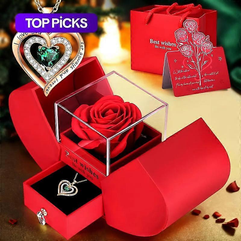 Rose Party Gift Box with I Love You Necklace, 1 Set Romantic Rose with Love Heart Necklace, Gifts for Girlfriend, Women, Mom, Wife, Gifts Id