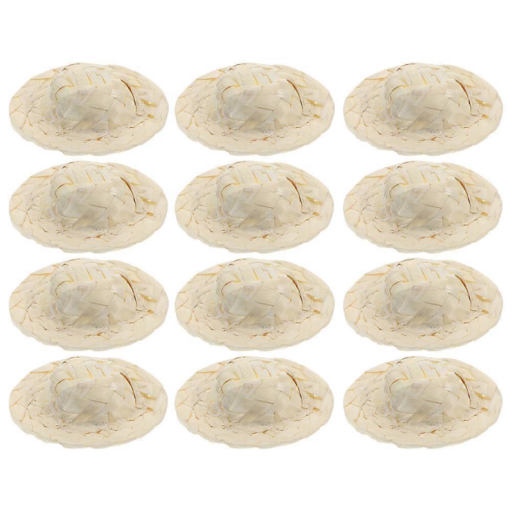 Mini Straw Hats Doll Hats for Photo Props 36Pcs Woven Light Yellow