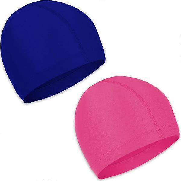 2 pcs elastic swim caps comfortable non-slip fabric swim cap lightweight swim caps for women men children for swimming Lake Blue, Rose Pink