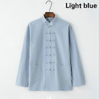 Chinese Mens tops Long Sleeve Frog Button Tang Suits Cotton Linen Kung Fu Shirt