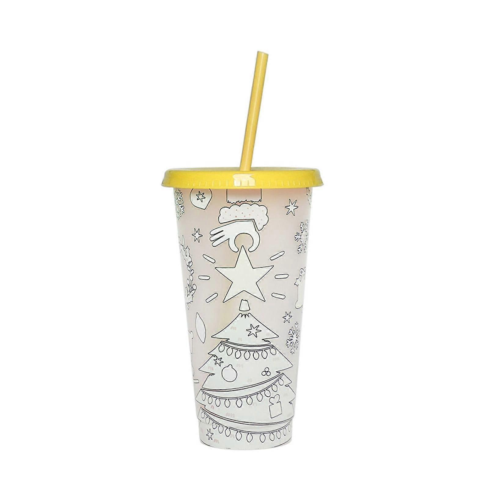 Witspace Christmas Color Changing Cups, Reusable Plastic Tumbler with Lids & Straws, Compatible with Cold Drinks, Smoothies, Iced Coffee