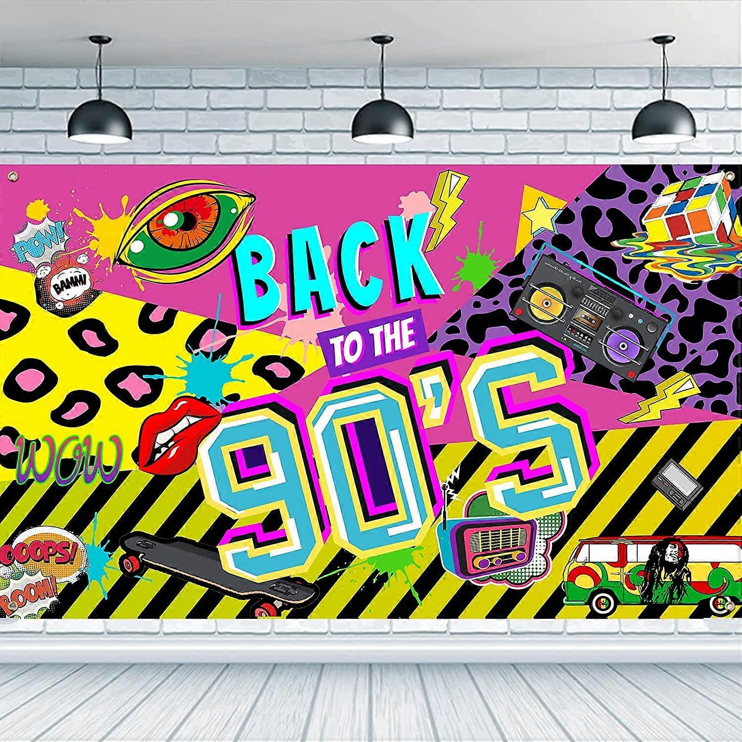 71x43 inch 90s Theme Party Banner with Rope, Hip Hop Graffiti Back to The 90's Party Supplies, Colorful Polyester Sign, Mixed Colors