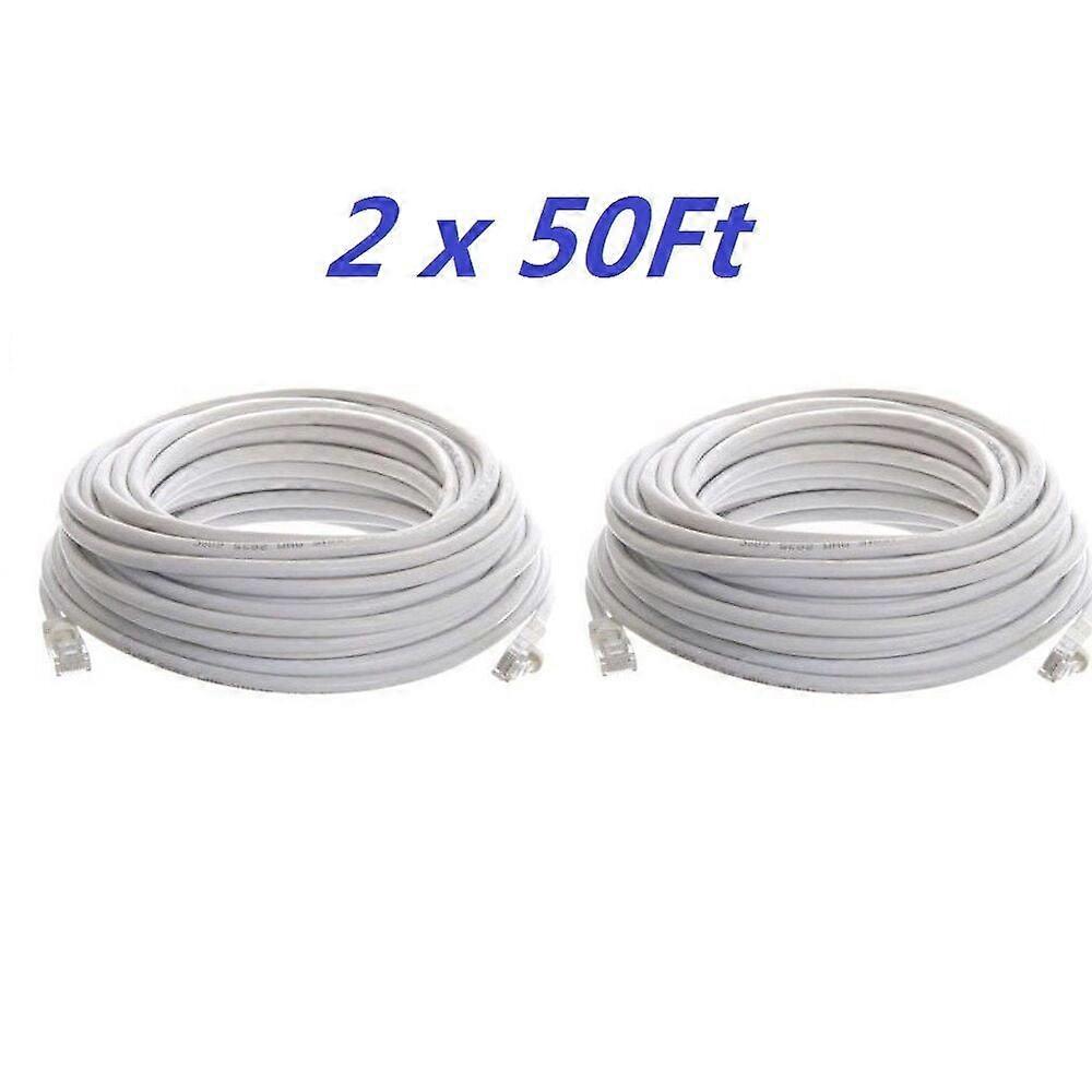 2 x CAT5 50ft FEET White Internet LAN CAT5e Network Cable Cord for PC Router US