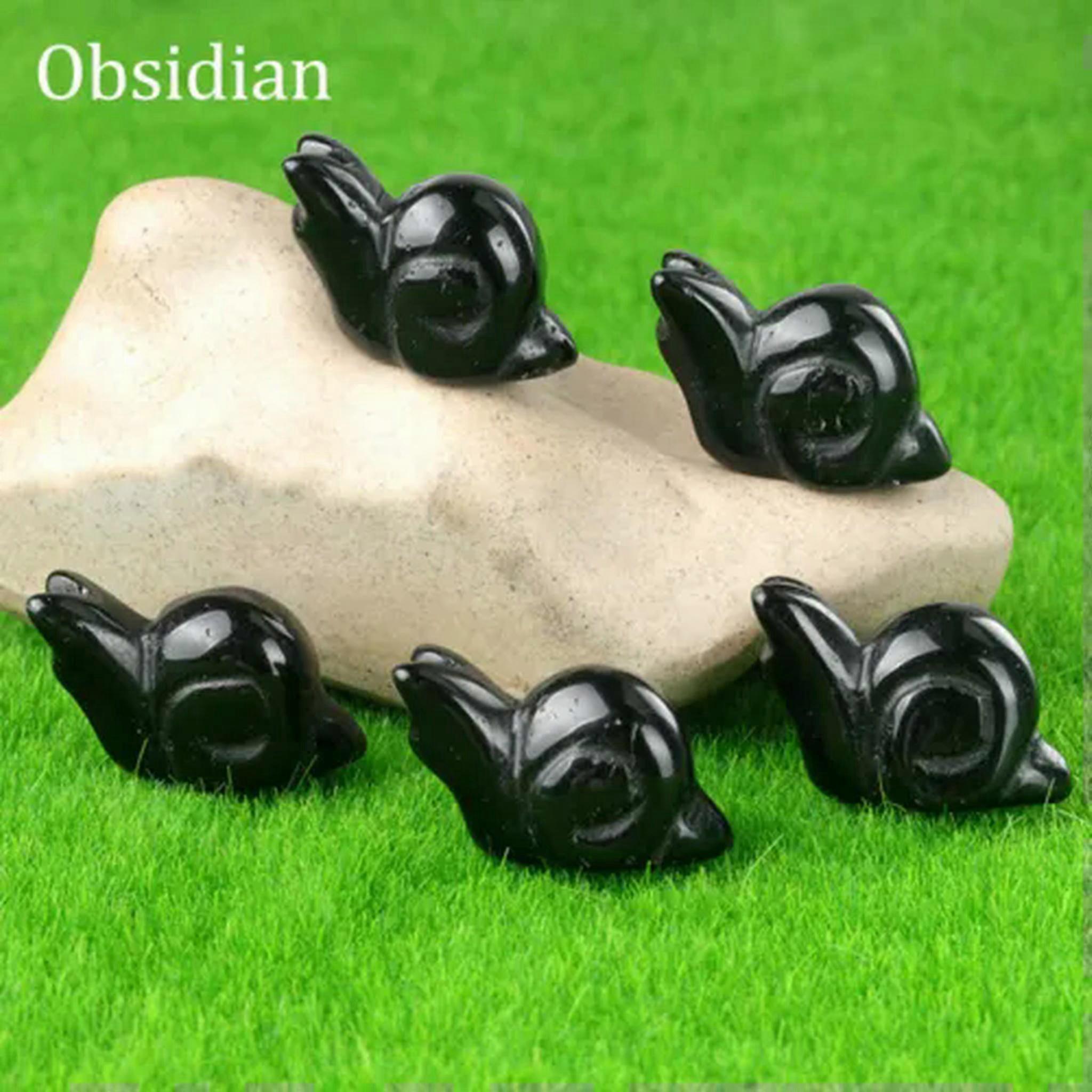 RSAMD Mini 1" Natural Gemstone Cute Snail Crystal Carving Figurine Statute Home Decor-1PC (Random Pick)-Obsidian
