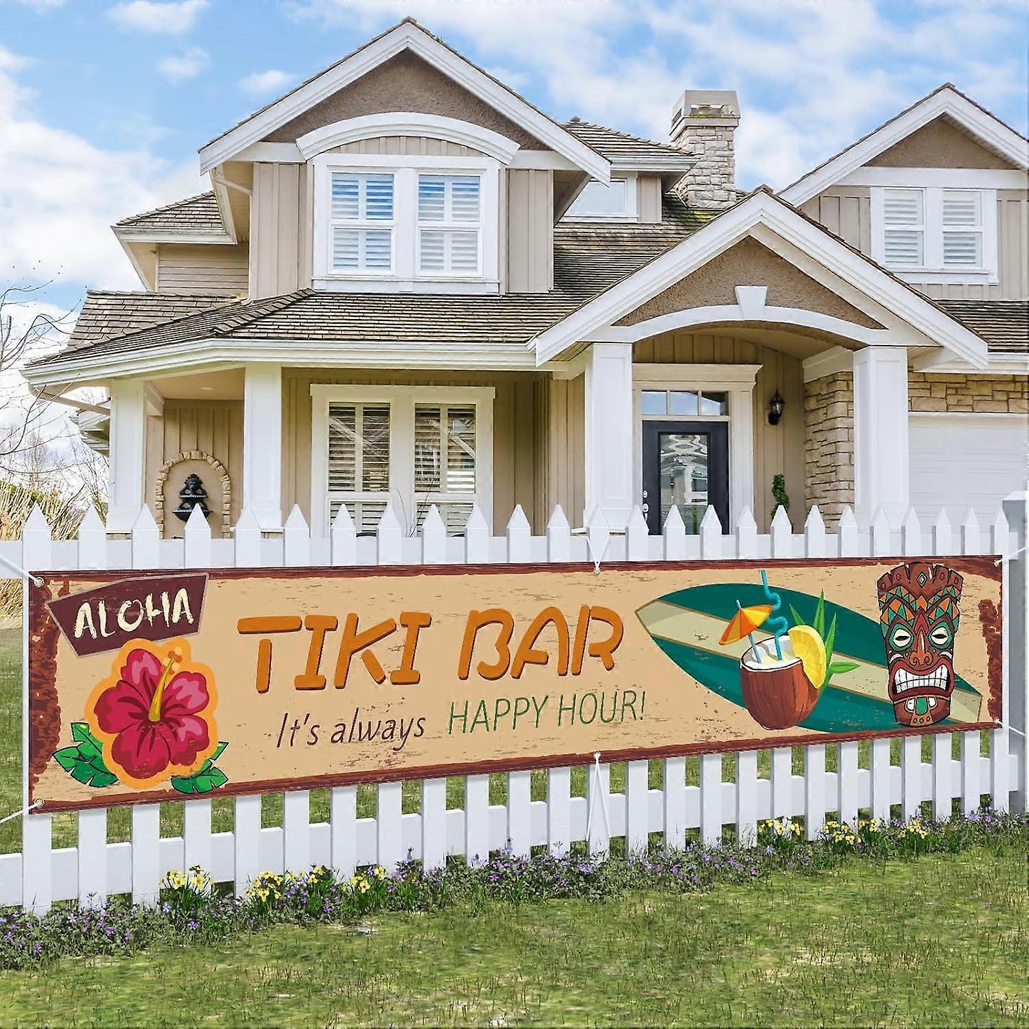 Tiki Banner Aloha Decor 120"x20" Luau Party Hawaii Tropical Decor for Outdoor, Yard, Wall, Fence, Indoor - It's Always Happy Hour