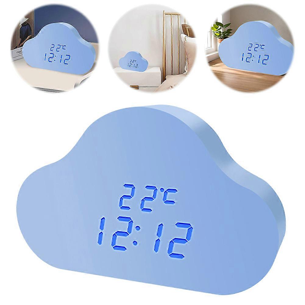 jixopn LED Clouds Alarm Clock Voice Control Digital Snooze Electronic Clock (Blue)