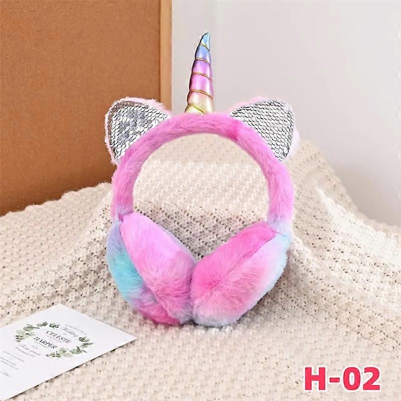 Children Cartoon Unicorn Earmuffs Winter Warm Fluffy Ear-Muffs Cover Fur Plcomh Sequin Cat Ears Headwear Gilrls Tie-dye Earflap
