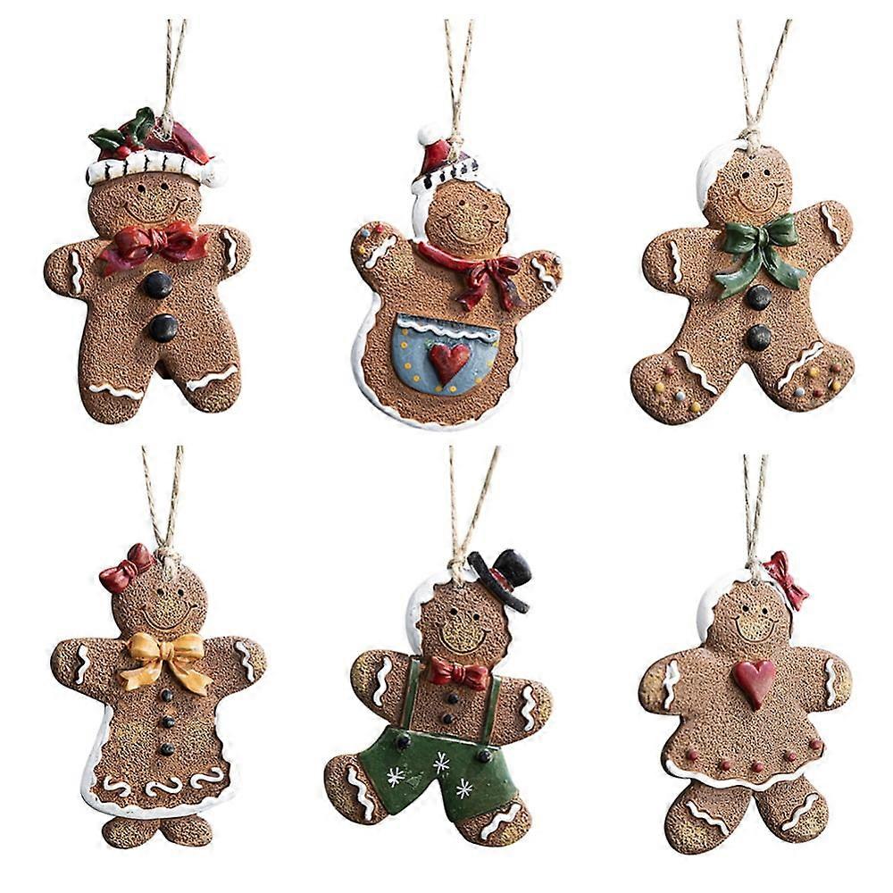 6pcs Christmas Gingerbread Man Pendants, Resin Ornaments for Tree, Wall, Window, Fireplace, Tabletop, Kids Gift, Winter Party Decor