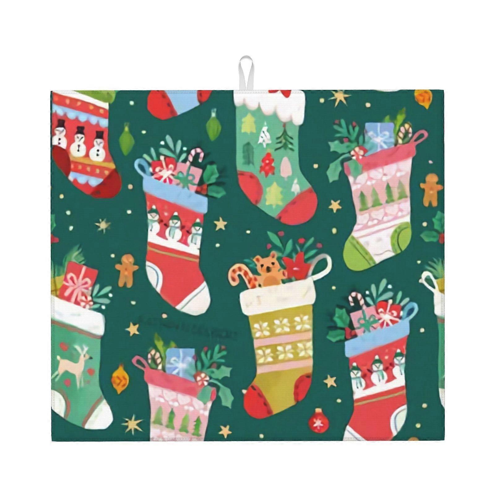 Christmas Stockings Dish Drying Mat For Kitchen Counter, Microfiber Dish Mat, Fast Absorbent Draining Pad