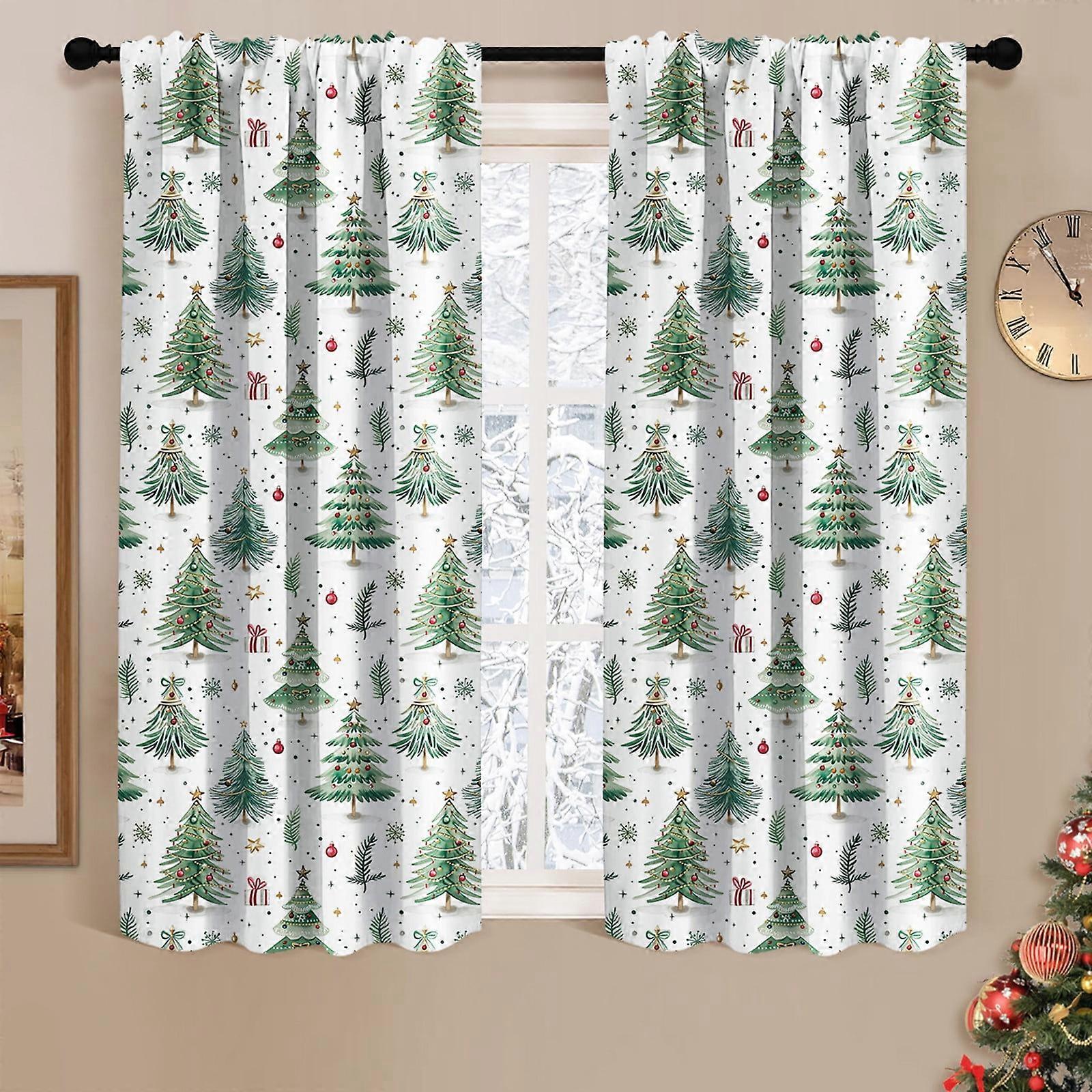 Green Christmas Pine Tree Curtains, Holiday Print Window Treatments for Bedroom Living Room Decor (S)