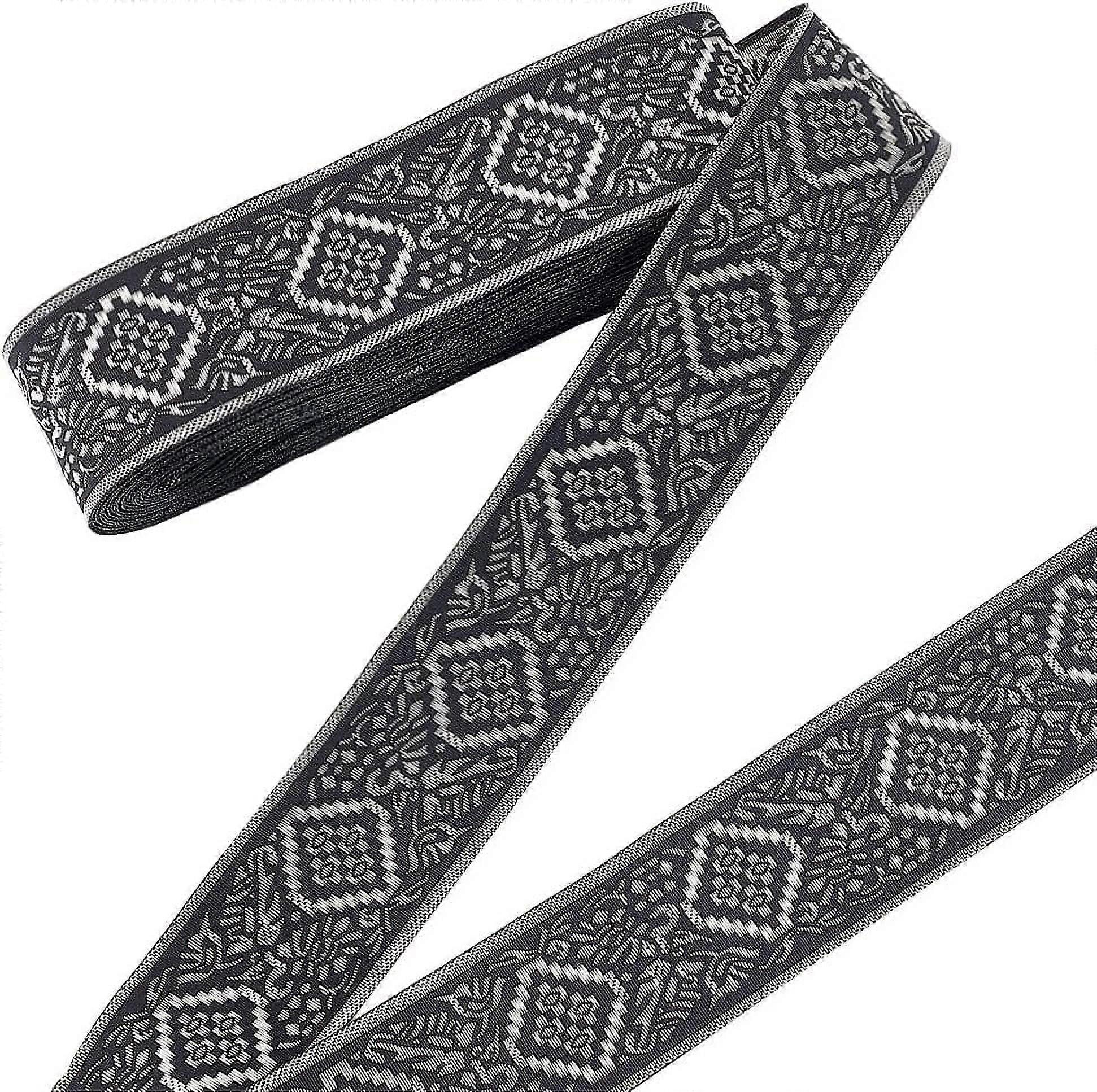 10 Yards 1.57" Black Embroidered Ethnic Jacquard Polyester Ribbon for Sewing, Crafting, Home Decor, Wedding DIY, Clothing Trim Compatible with