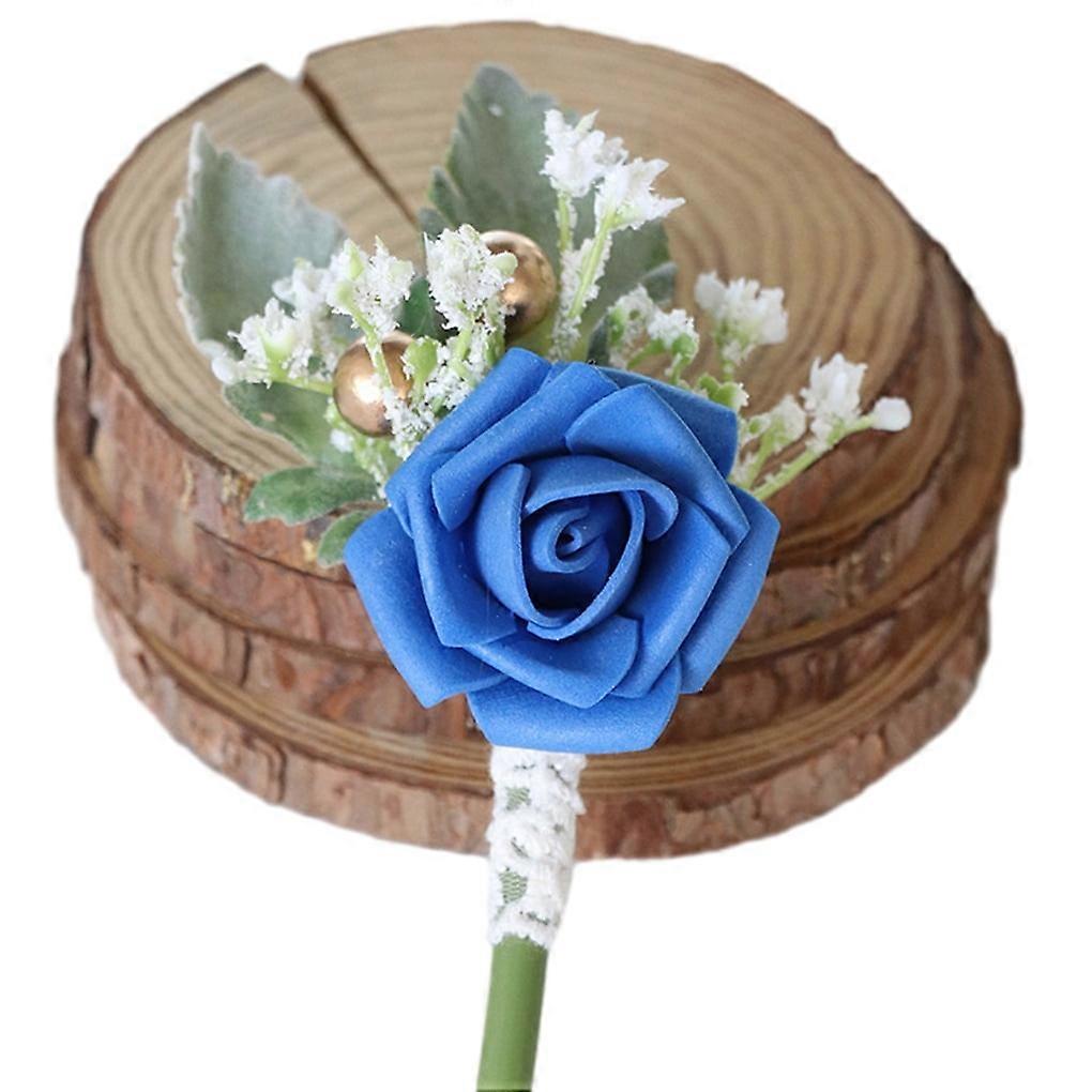 Guardung Realistic Appearance Exquisite Crafted Wedding Boutonniere With Soft Texture Groom Boutonniere Klein Blue