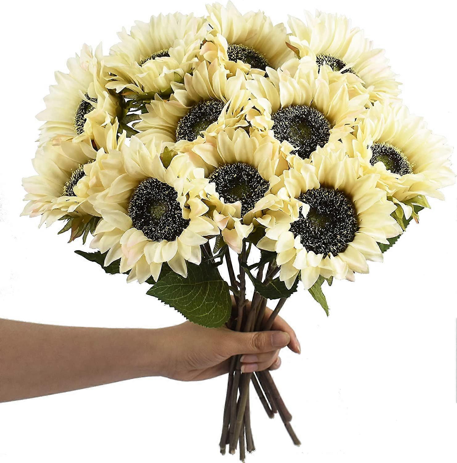 Zukuco 6 Pcs Artificial Sunflower Bouquet with Stems, White Fake Sunflowers for Wedding, Home, Hotel, Office, Party Decor