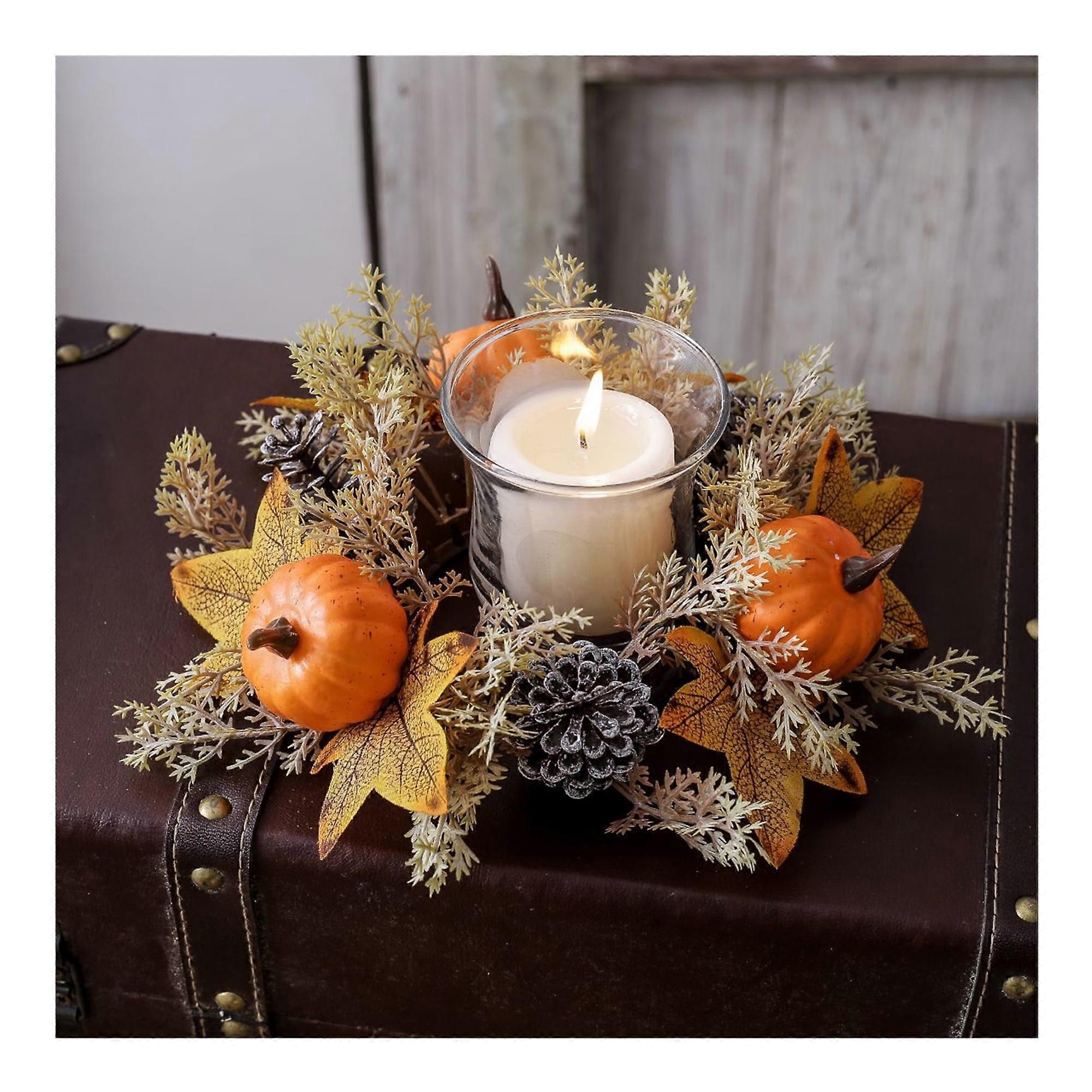 Fall Candle Rings Wreaths Neutral Fall Decor Artificial Pumpkin Maple Leaf Candle Garland Halloween Thanksgiving Berry Candle Rings