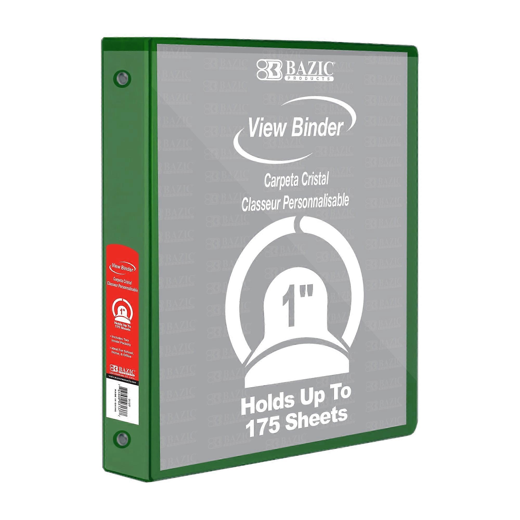 BAZIC 3 Ring Binder 1" Economy View Binders Green, Hold 175 Sheets, 1-Count