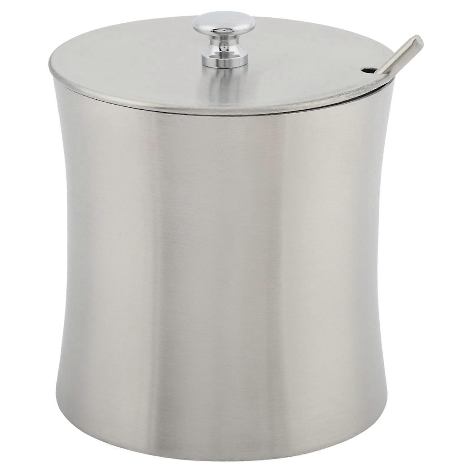 Sugar Bowl Spice Salt Pepper Seasoning Condiment Pot Jar with Cover Spoon Stainless Steel Sugar Bowl
