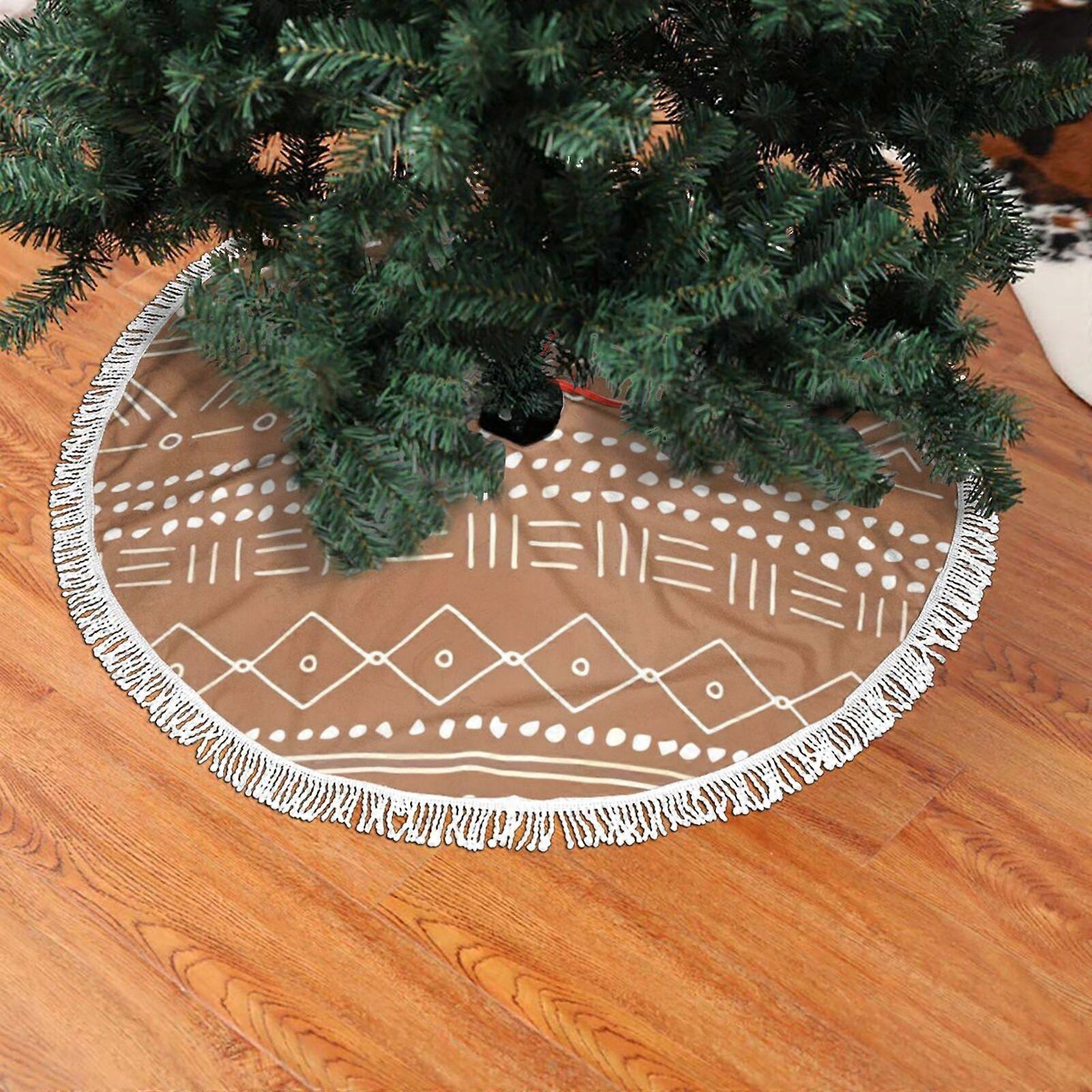 Christmas Fringed Lace Tree Skirt, Bohemian Mayan Abstract Summer Love Aztec Soft, Light, Good Touch Tree Skirt 48"