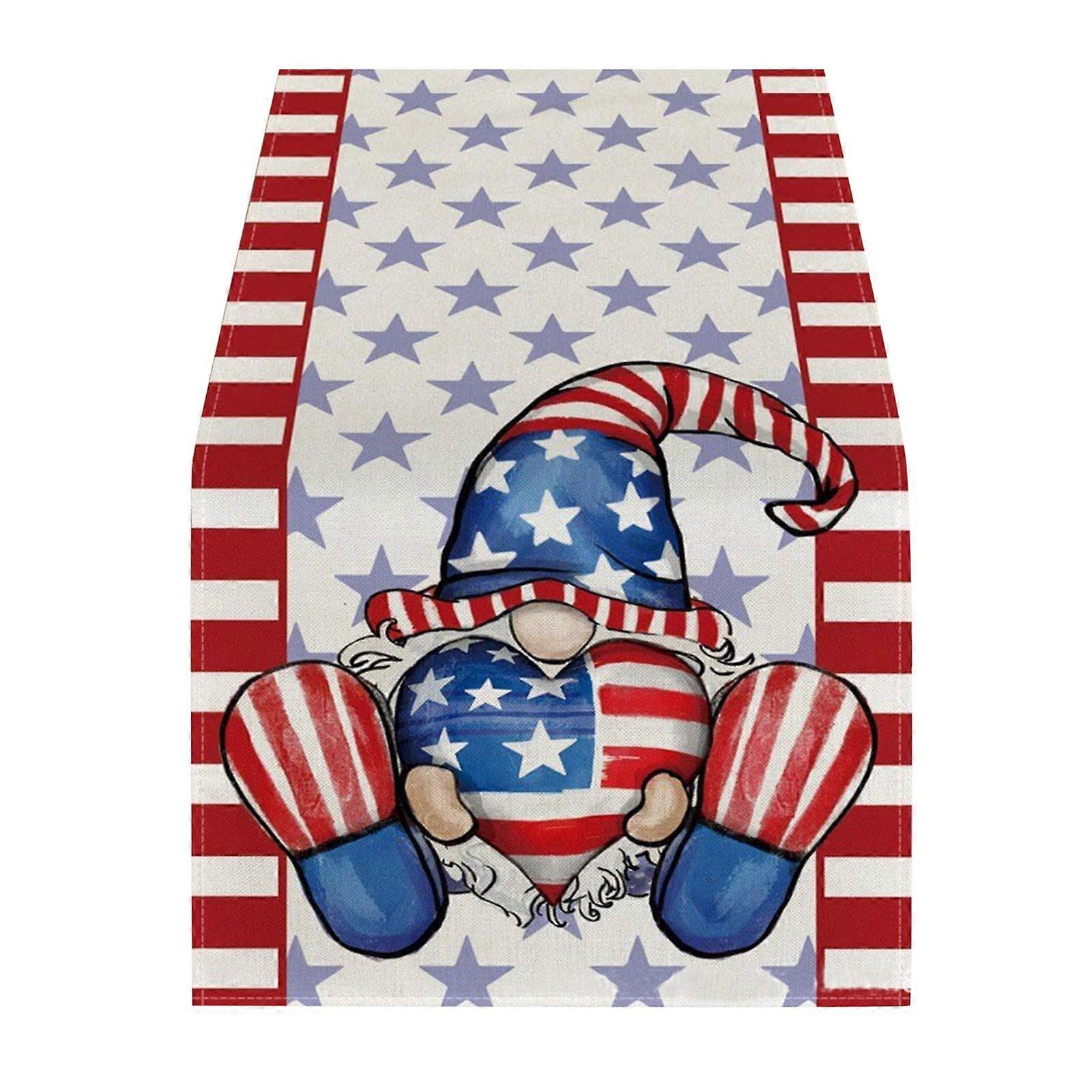 Ongmies Table Runner, Patriotic Stripes Wired Edge Ribbon, Custom Satin Flag, Holiday Craft Decoration, Compatible with Independence Day