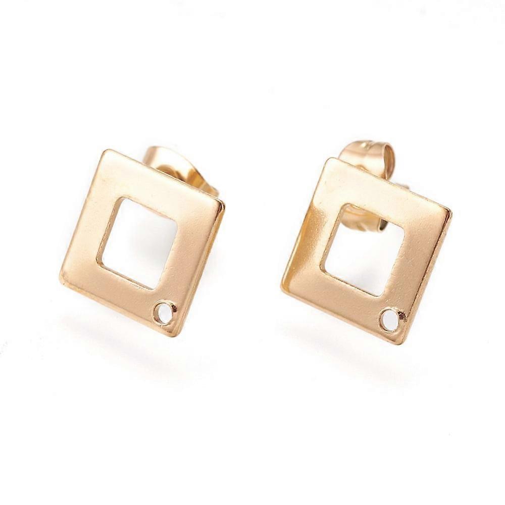 10pc Ion Plating(IP) 304 Stainless Steel Stud Earring Findings Square/Rhombus Golden 13.5x13.5x0.8mm Hole: 1mm Pin: 0.7mm