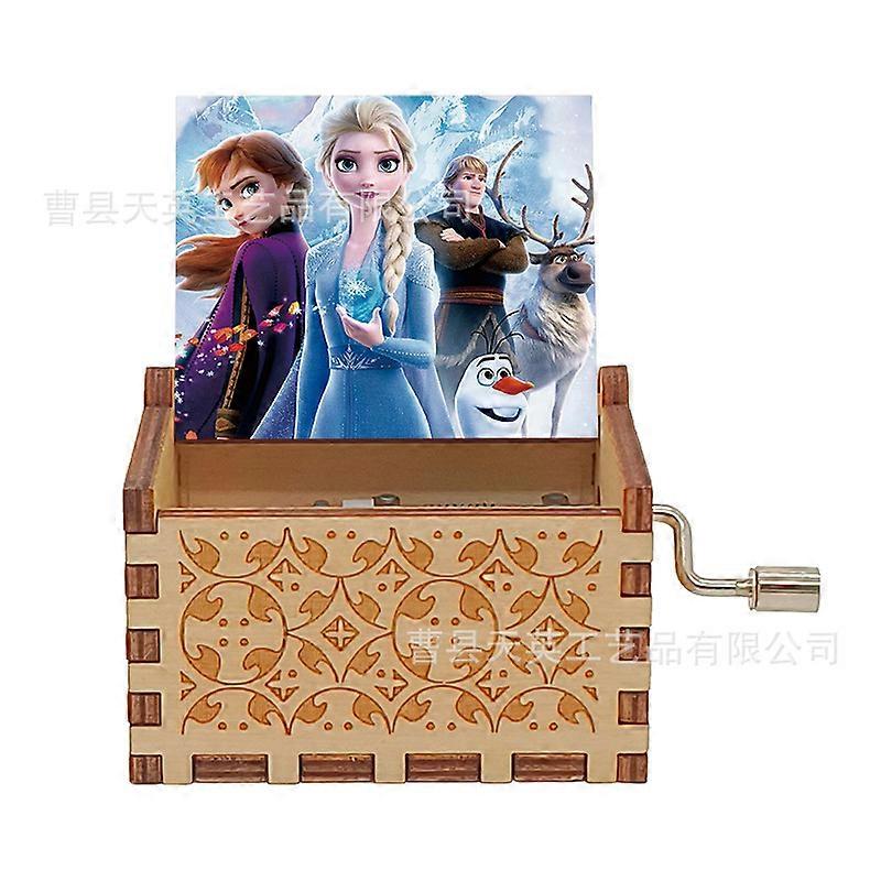 Disney Frozen Cartoon Themed Mcomic Box Elsa Wooden Hand Cranked Casket for Children's Day Birthday Holiday Gifts