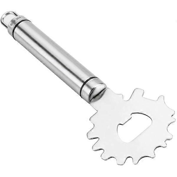 Stainless steel grill scraper cleaning tool with 5 inch handle and built-in bottle opener