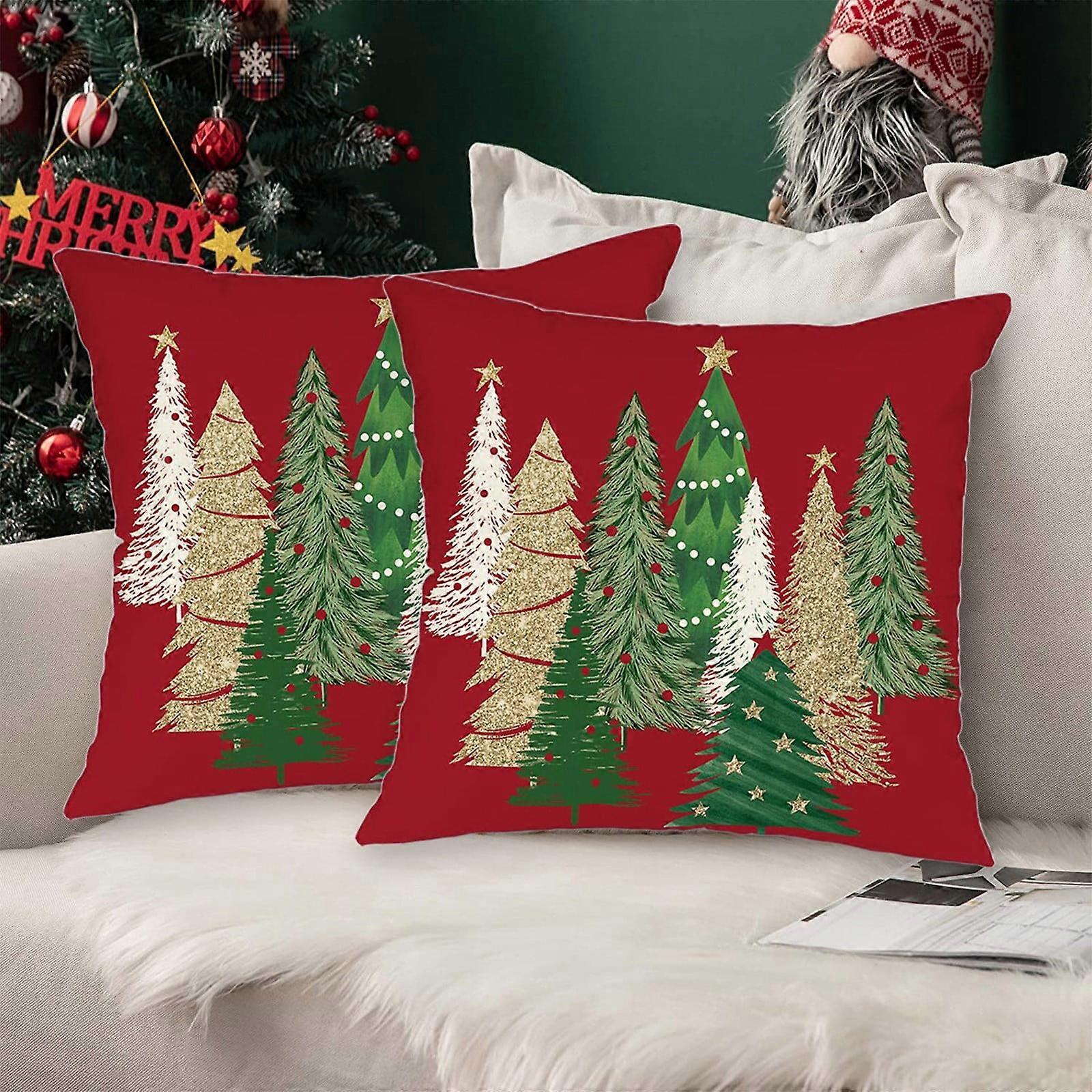 Christmas Tree Throw Pillow Covers 18x18 Set Of 2,Christmas Tree Decorative Red Throw Pillows Covers,Winter Christmas Pillowcases Decor for Home Couch Christmas Decor