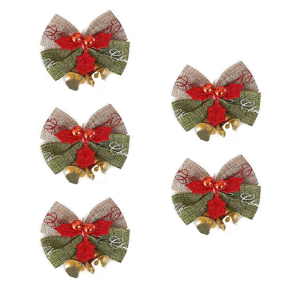 5Pcs Christmas Tree Bow Ornaments Bell Linen Small Bow Decorations Wedding Party Decorative Supplies Christmas Bow